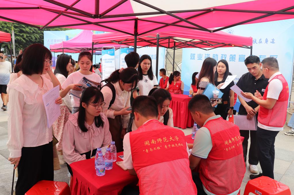 此次雙選會由漳州、廈門、泉州、龍巖和三明市人社局、中共漳州市委人才辦及閩南師范大學(xué)共同舉辦,據(jù)不完全統(tǒng)計,校內(nèi)外3000余名畢業(yè)生現(xiàn)場求職,招聘企業(yè)收到簡歷4000余份,初步達成就業(yè)意向755人。