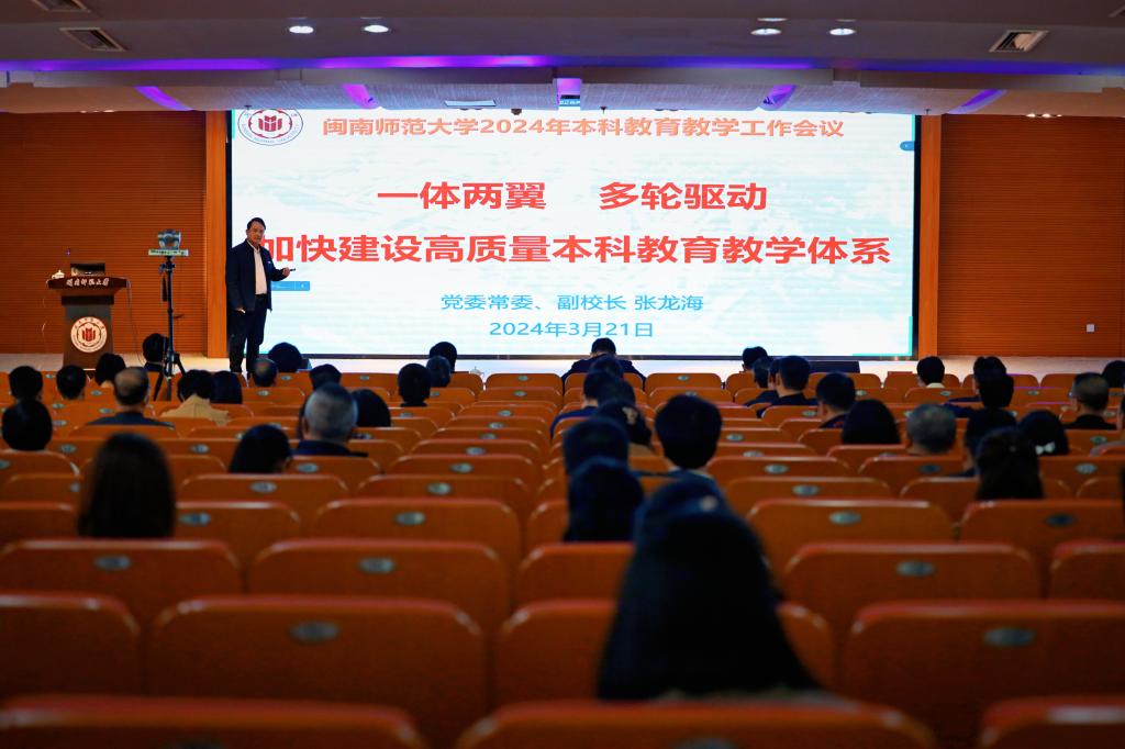 校黨委書記、校長李順興在會上作總結講話。他指出,本科教育要適應新質生產力的需求,堅持“為黨育才、為國分憂、為家導航”的辦學核心價值,將學生培養成為新質生產力的“勞動者”。他強調,要以符合辦學內涵需求為導向,抓好評估整改,確保本科教育可持續發展;以適應未來發展需求為引領,推動專業整合,完善本科教育發展鏈條;以滿足培養質量需求為目標,深化革新增效,構建本科教育保障體系,辦好閩南師大的本科教育。他要求,各單位要扎實做好評估整改工作,加強教材建設和管理,調整優化專業結構,推進交叉學科專業布局,構建人才培養良性閉環,強化課程體系建設,創新教學方式方法,多措并舉加快革新增效,推動學校“雙一流”建設取得更大突破。