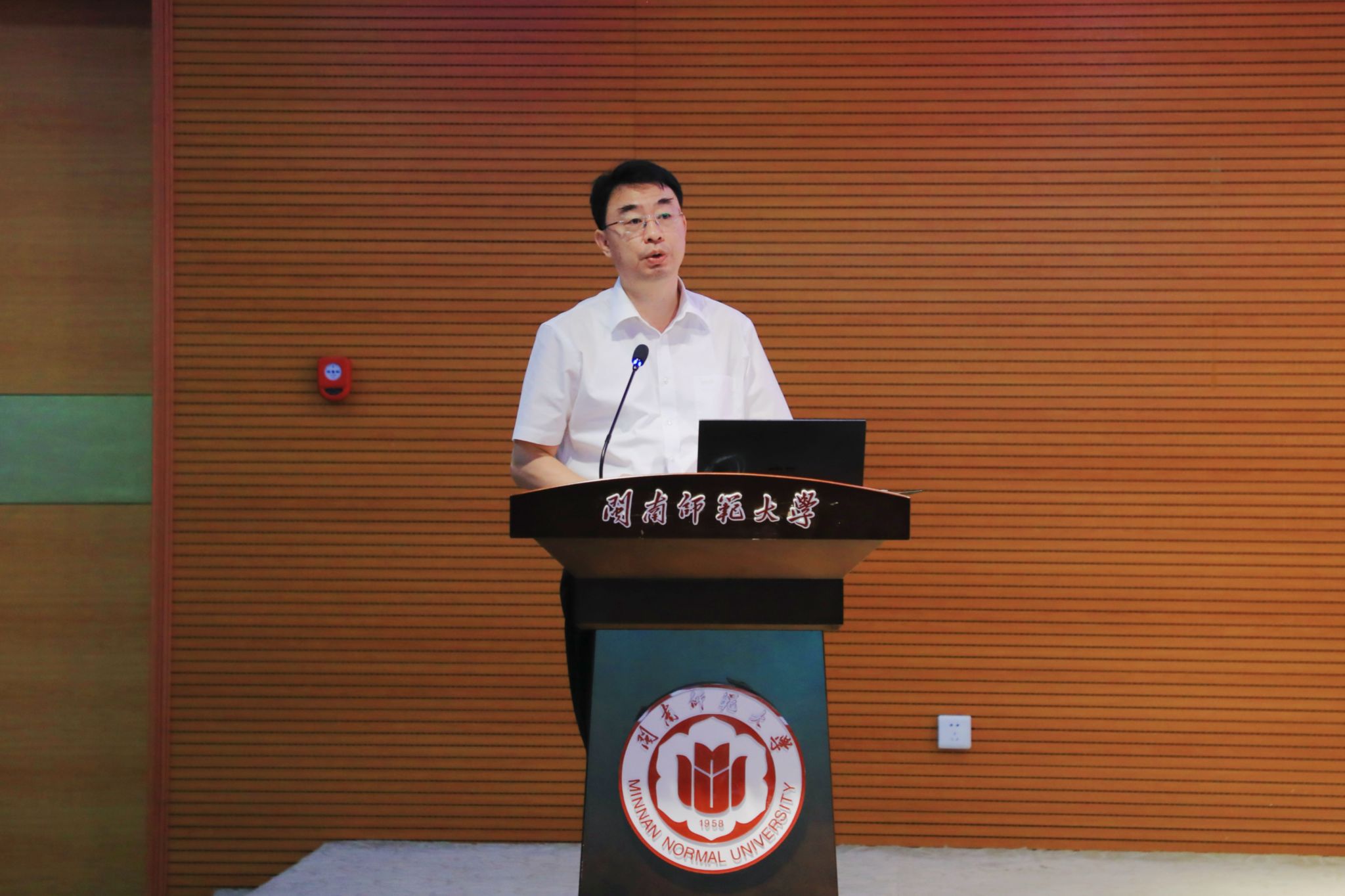 ▲校黨委副書記肖慶偉主持第二階段會議,并傳達學習上級有關文件及會議精神