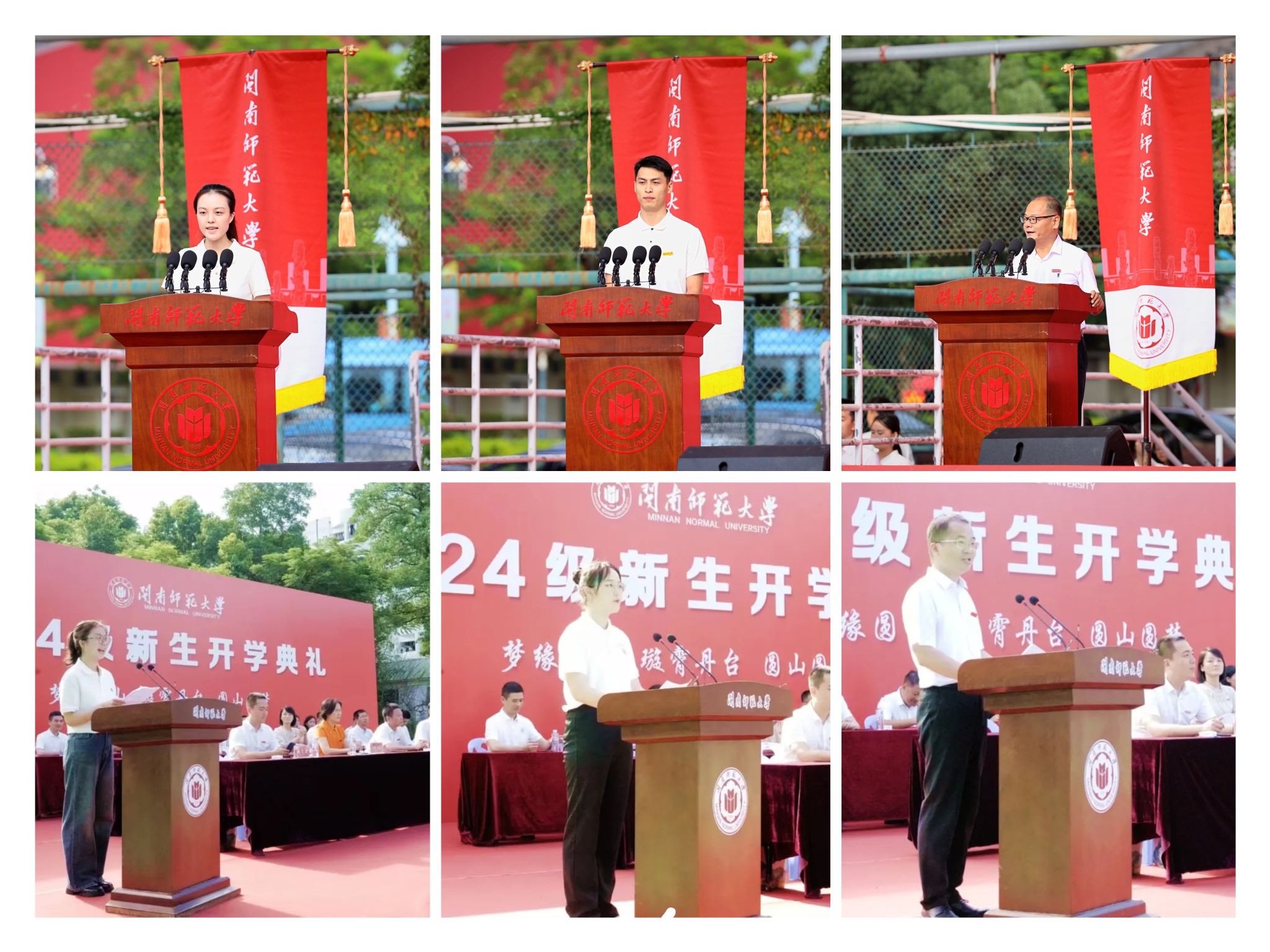 9月9日上午,我校2024級(jí)新生開學(xué)典禮分別于江濱校區(qū)和圓山校區(qū)舉行。校黨委書記、校長(zhǎng)李順興,校黨委副書記林致遠(yuǎn),校黨委常委、副校長(zhǎng)何紹福等在家校領(lǐng)導(dǎo)出席。典禮分別由學(xué)生處處長(zhǎng)蔡斌、圓山管委會(huì)副主任陳露明主持。