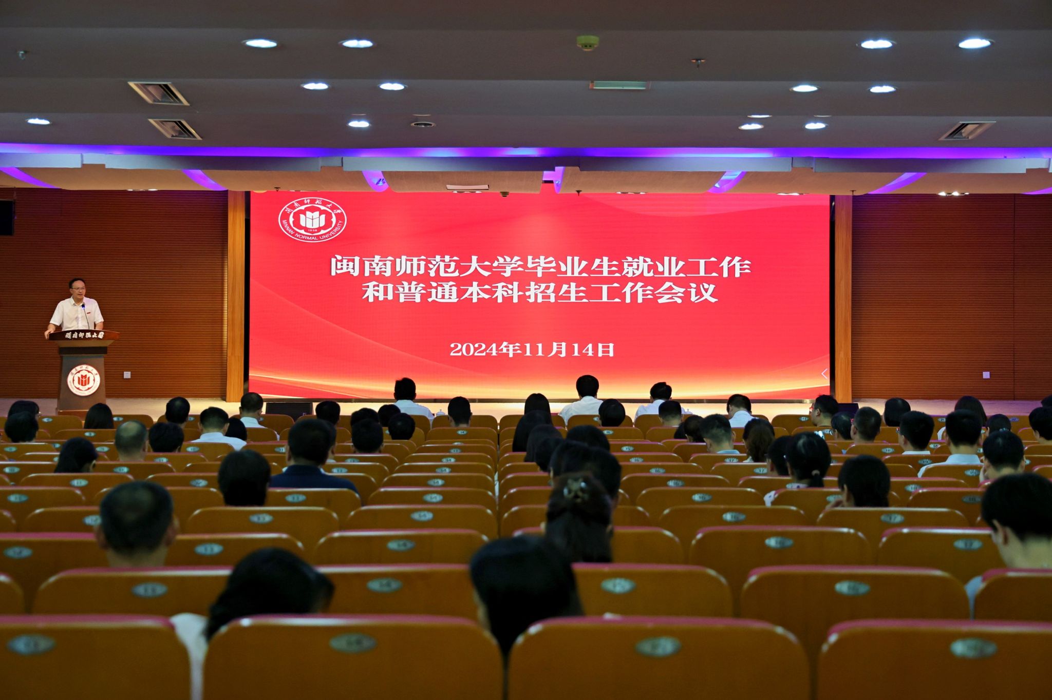 校黨委副書記林致遠代表校黨委作總結講話。他指出,招生是學校存續的命脈,就業體現辦學社會價值,此次會議是校黨委立足新時代新征程以及學校發展面臨的新形勢新任務,為動員全校師生以更大作為提升招生就業工作質量,推動學校高質量發展作出的重要部署。他強調,各單位要提高政治站位,深刻學習領會習近平總書記重要講話精神,堅決把招生就業工作作為落實教育強國建設的重要抓手;要準確把握形勢,搶抓發展機遇,以更大魄力、更大作為深化招生就業工作體制機制改革;要強化統籌協調一體推進,全面壓實工作責任,切實發揮招生就業工作支撐引領學校高質量發展的重要作用。他要求,全校上下要在習近平新時代中國特色社會主義思想指導下,胸懷“國之大者”,凝聚發展共識,攻堅克難、狠抓落實,以招生就業工作提質升級支撐學校高質量發展,用踔厲奮發的實踐答好新時代新征程“閩南師大何為”的時代命題,為教育強國強省建設作出更大貢獻。