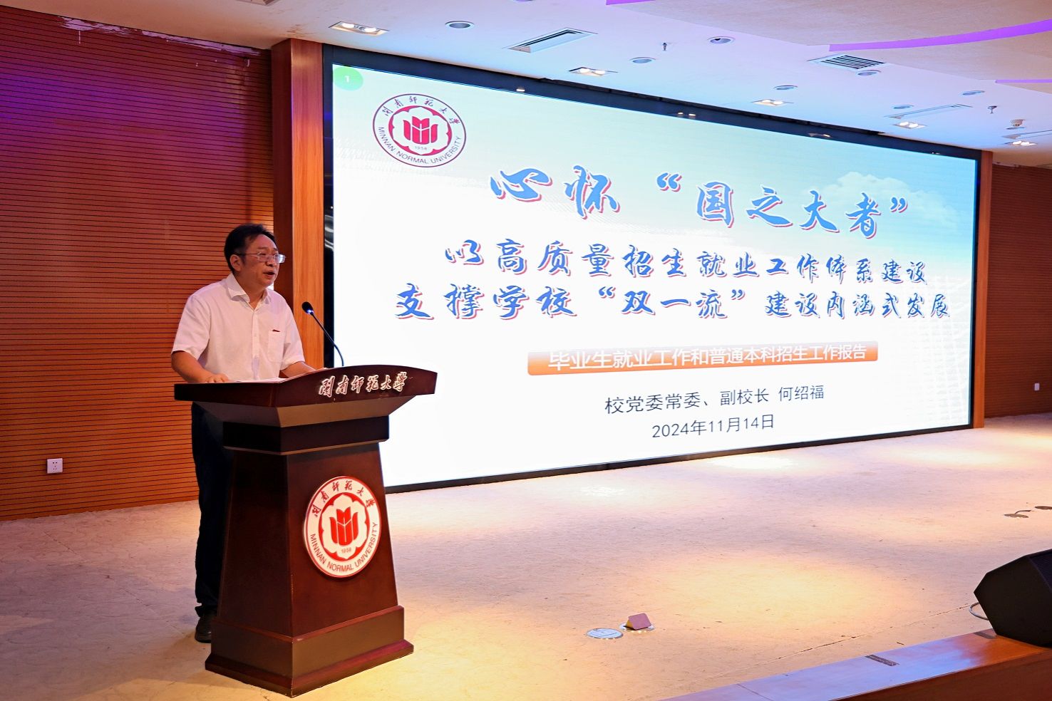 會上,何紹福作工作報告,總結回顧了2021年以來我校招生就業工作情況,分析了我校面臨的新形勢、新挑戰和新機遇,并對當前和今后一個時期做好招生就業工作進行部署。他強調,一要聚焦服務國家戰略需求和區域經濟社會高質量發展,加快建立健全“招生—培養—就業”聯動機制;二要聚焦落實立德樹人根本任務,構建更加健全有力的全員參與招生就業工作體系;三要聚焦支撐學校“雙一流”建設和辦學初心使命,不斷構建更加完善有力的招生就業保障體系。