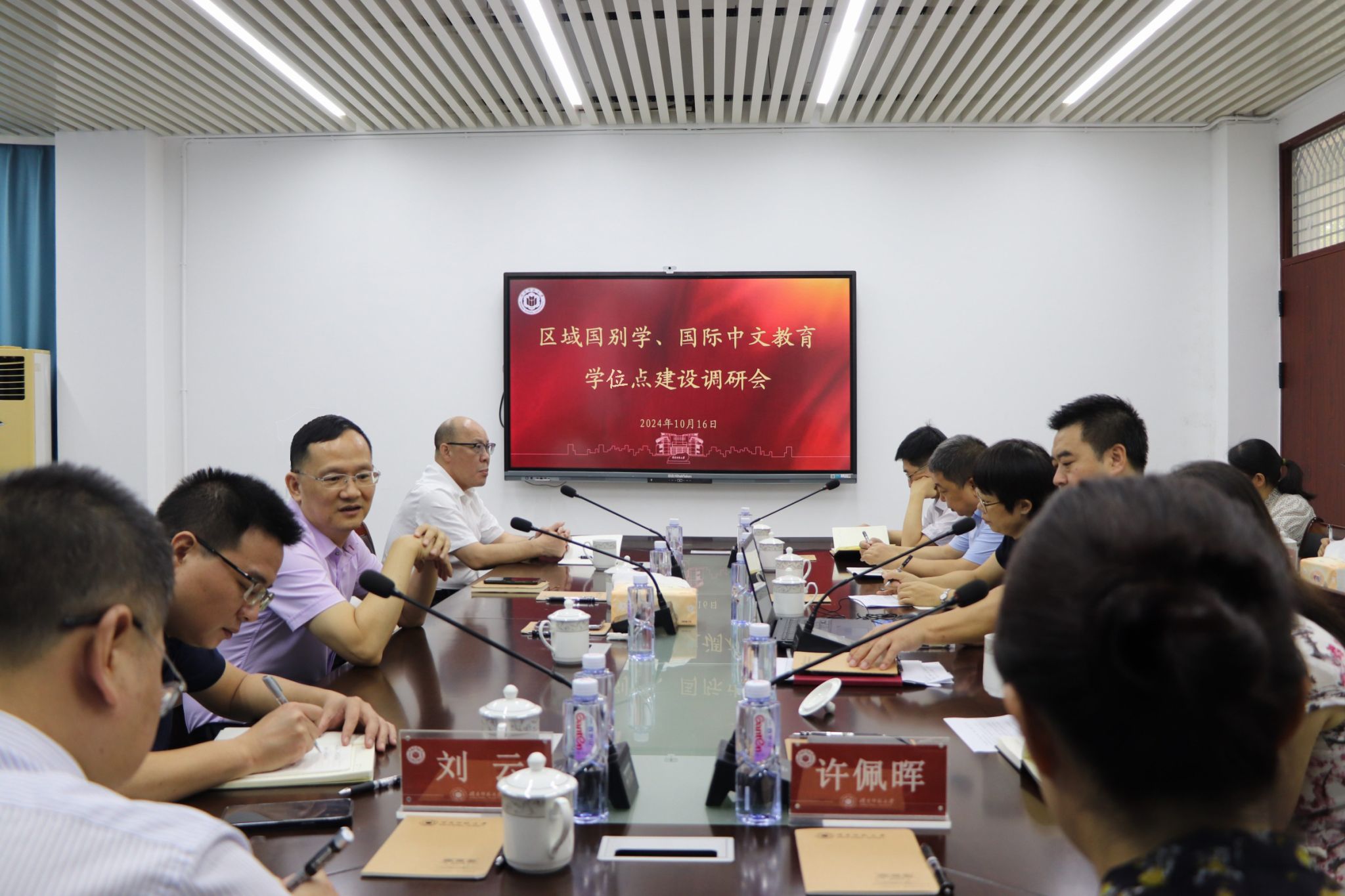 校領導指出,各單位要深入學習貫徹黨的二十屆三中全會精神和全國教育大會精神,主動服務國家戰略需求,既要彰顯“為國分憂”,也要凸顯“為民解惑”,建設好區域國別學、國際中文教育學位點,加大智能科學與技術學科建設力度,形成推動學校高質量發展的倍增效應。